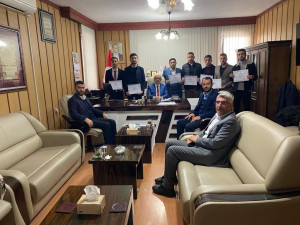 SONDAKİKASiirt Üniversitesi (SİÜ) Rektörü Prof. Dr. Nihat Şındak, SİÜ Beden Eğitimi ve Spor Yüksekokulu’nda (BESYO) eğitimine devam eden başarılı sporcular ile BESYO Müdürü Doç. Dr. Serdar Adıgüzel’i makamında ağırladı. -