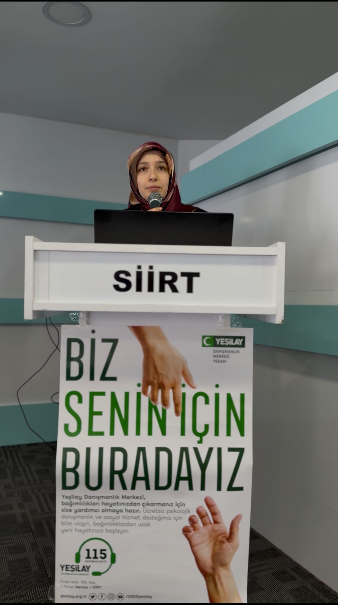 AK Parti Siirt İl Kadın Kolları’ndan “Bağımlılıkla Mücadele” Semineri AK Parti Genel Merkez Kadın Kolları Başkanlığı tarafından 81 ilde hayata geçirilen “Bağımlılıkla Mücadele” seminerleri kapsamında Siirt’te kapsamlı bir farkındalık programı düzenlendi. AK Parti Siirt İl Kadın Kolları ev sahipliğinde gerçekleştirilen seminer, AK Parti Genel Merkez Kadın Kolları Sağlık Politikaları Başkanlığının koordinasyonunda yürütüldü.