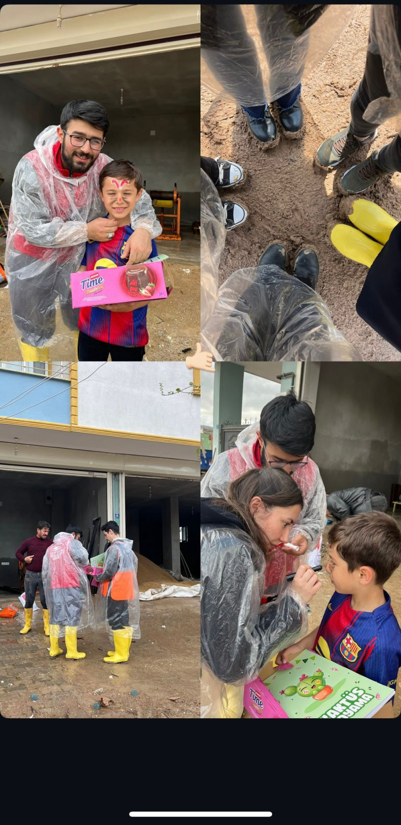 Saha çalışmaları kapsamında çocukları ziyaret eden gönüllüler; yüz boyama etkinlikleri, boyama kitapları, balonlar ve çeşitli ikramlarla afet bölgesini adeta bir şenlik alanına çevirdi. Yaşanan sel felaketinin izlerini silmek için çocuklara şeker ve kek ikram eden gençler, miniklerin yüzündeki gülümsemeyle bölgedeki umudu tazeledi.