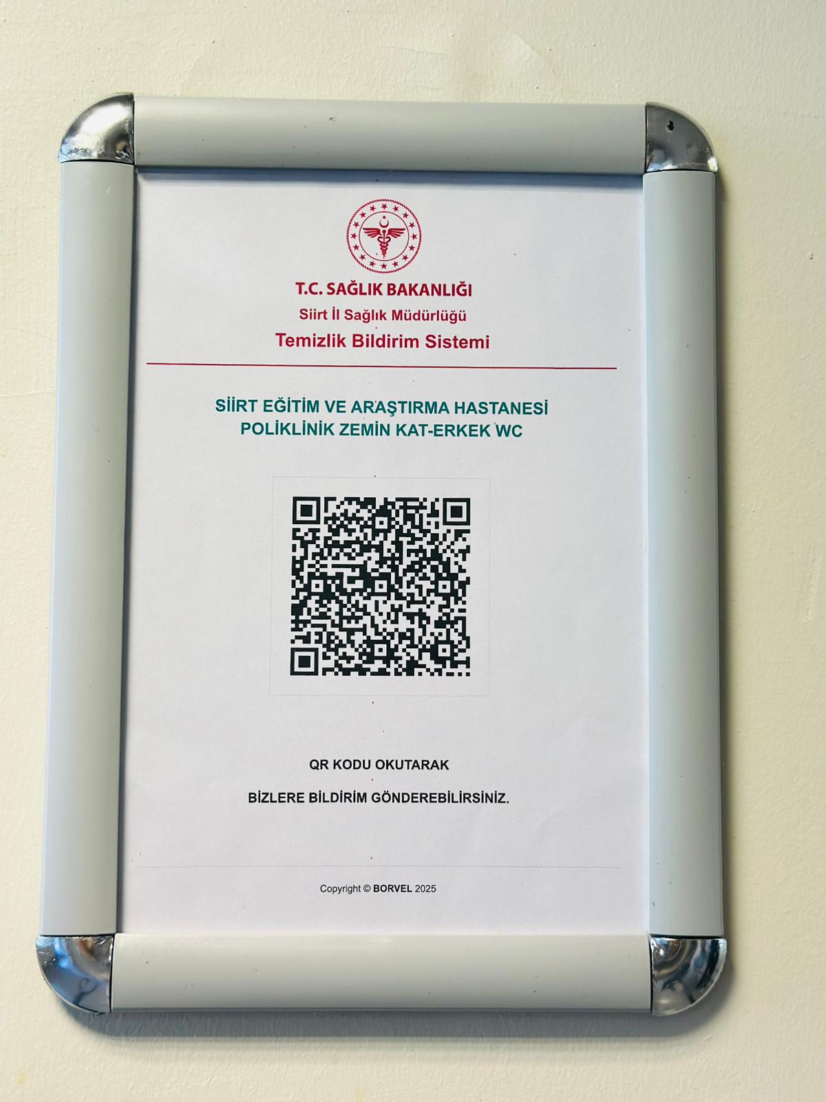 Ayrıca, hastanemizin farklı noktalarına yerleştirilen QR kodlar sayesinde yapılan temizlik işlemleri dijital ortamda kayıt altına alınıyor. Böylece denetim süreçleri kolaylaşıyor, hizmet kalitesi artıyor ve hijyen standartları sürdürülebilir hale geliyor.