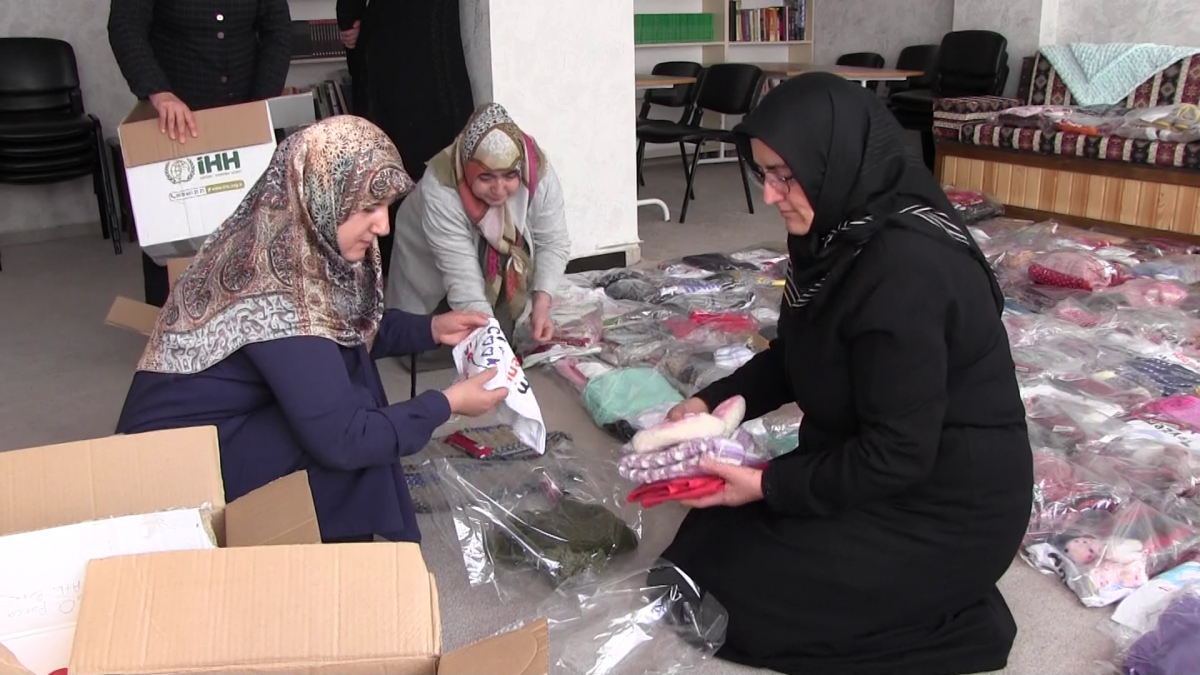 Siirt İHH kadın kolları üyeleri kış üşütür biz ısıtırız örgü örme kampanyasında örgütleri 1000 adet hırka bere eldiven ve çoraplardan oluşan giysileri Suriye de kamplarda yaşam mücadelesi veren çocuklara göndererek soğuklardan bir nebze olsa da korunmalarını sağladılar