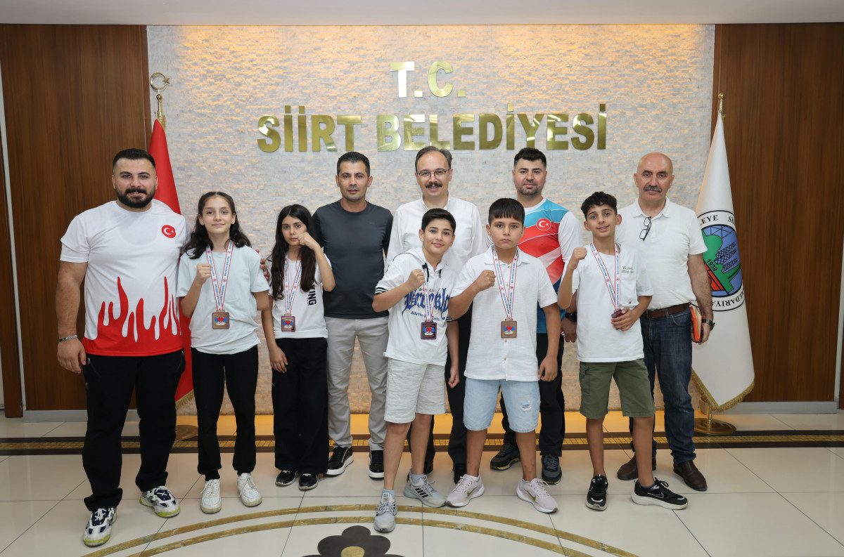 Siirt Valisi ve Belediye Başkan Vekili Dr. Kemal Kızılkaya, şampiyonada dereceye girerek ilimizi gururlandıran sporcularımızı ve antrenörlerini makamında kabul etti.